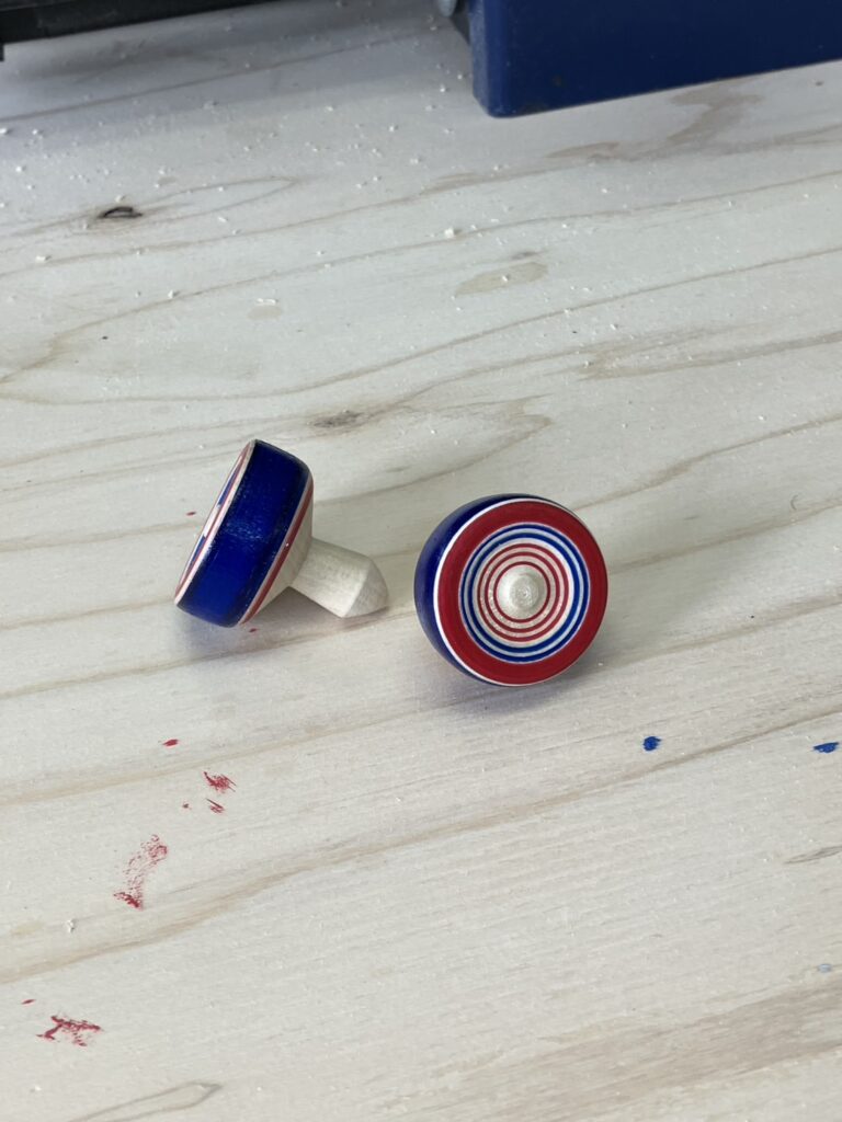 1月20日:いせはら Plus プロジェクトの皆さんに来ていただいて、大山ゴマの絵付けをしました。絵付けしたコマを回して皆で楽しみました。スタッフも参加して童心に帰ったようでした。