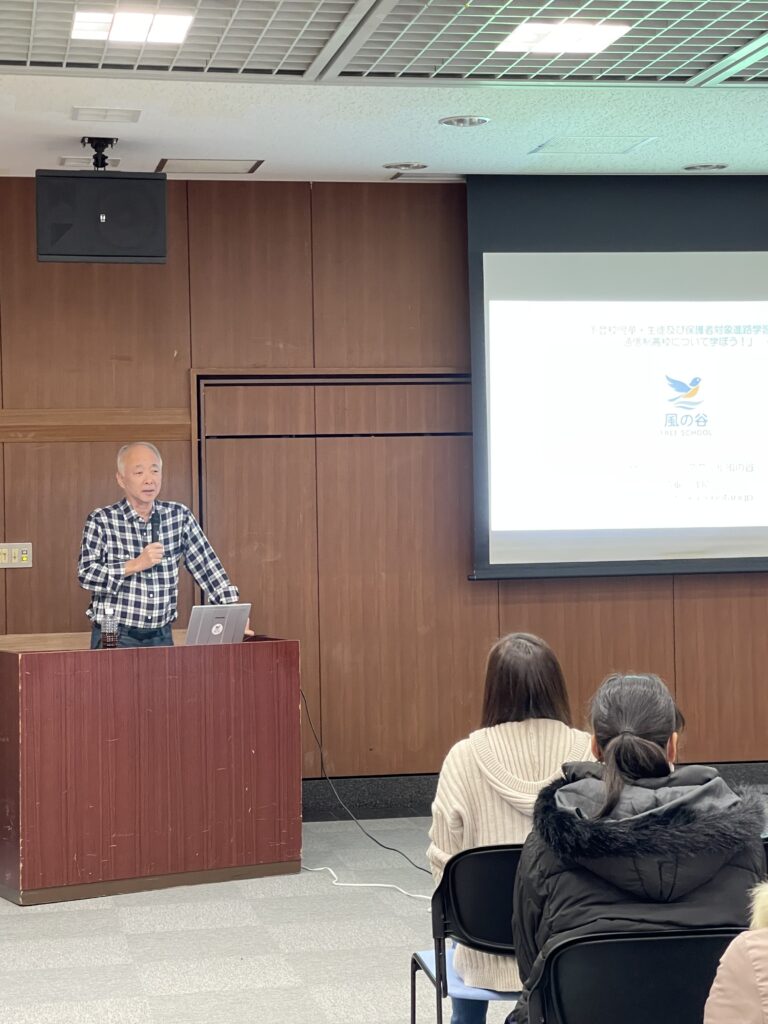 16名近くの参加をいただき、県立高校の種類や広域通信制高等学校の選び方等をお話しし、子どもが楽しく3年間を送るための高校選びについて情報交換を行いました。当日の資料についてご関心のある方はメール(info@fs-kazenotani.jp)でお問い合わせください。