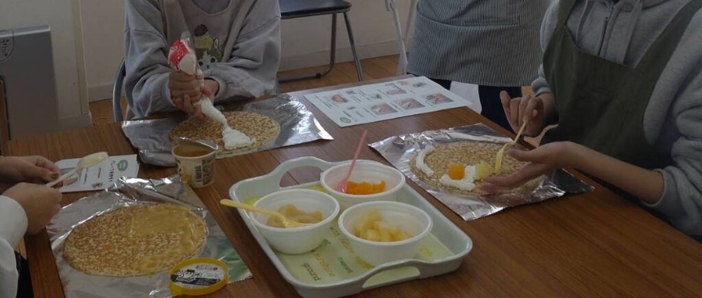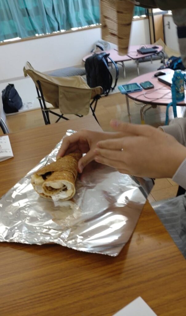 12月15日:クレープを作ってクリスマスパーティーを行いました。みんな、円錐が上手に作れていました。