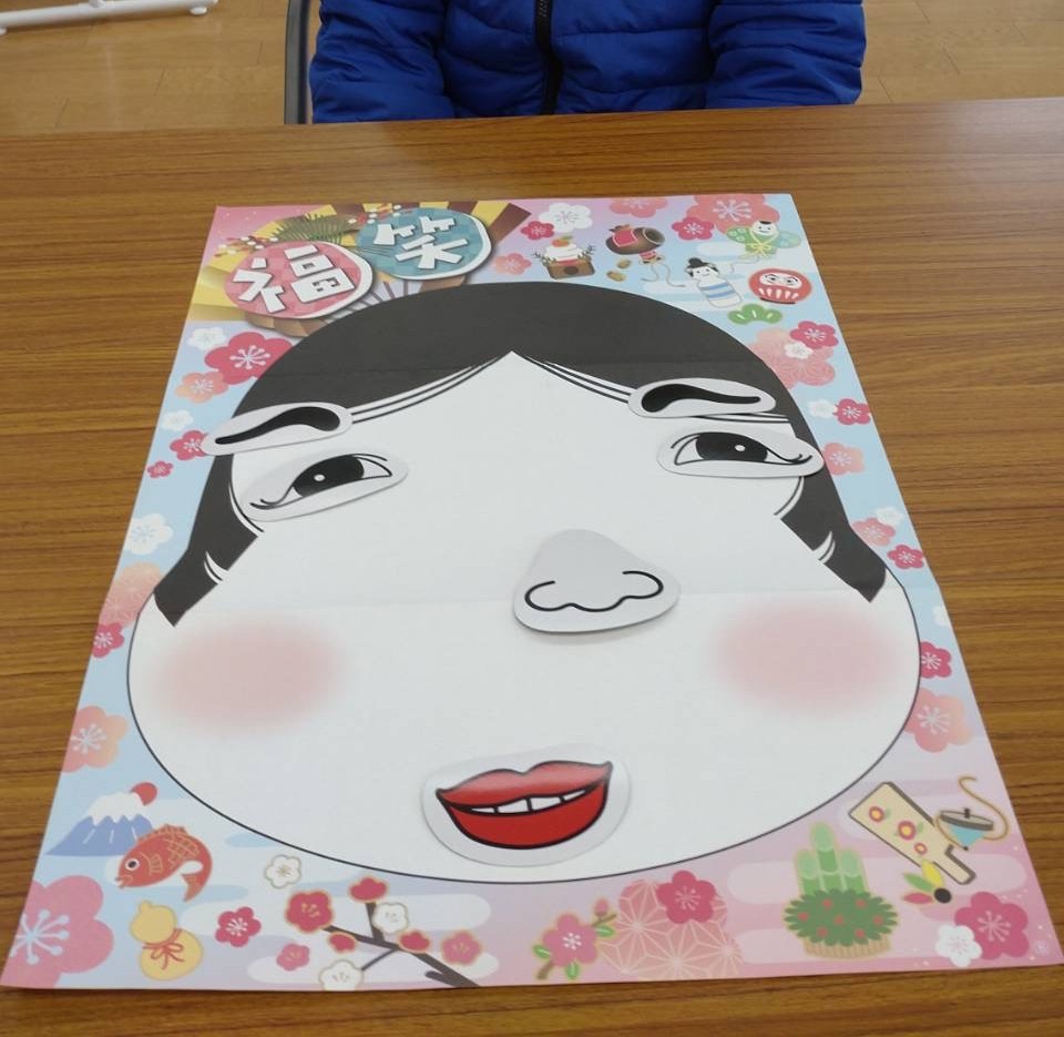1月15日:今日は新年にちなんでみんなで福笑いをして楽しみました。